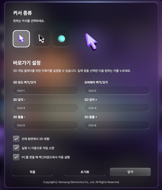 리뷰에서도 언급했지만 무안경 3D로 동영상, 게임을 즐기기 위해서는 오디세이 3D 허브가 필수입니다