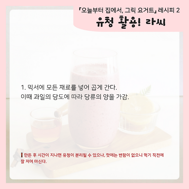 Tip. 만든 후 시간이 지나면 유청이 분리될 수 있으나,