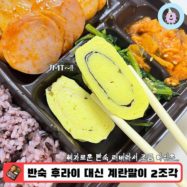 계란말이는 이렇게 2조각 들어 있었어요! 이것만 따로 팔아줘도 사먹을 정도로 맛과 식감 모두 훌륭한 JMT 템이었답니다. (팔아주세효...!!)