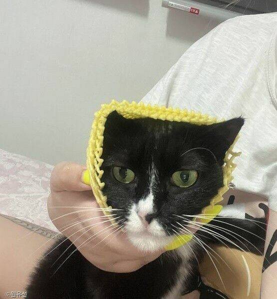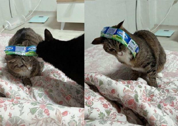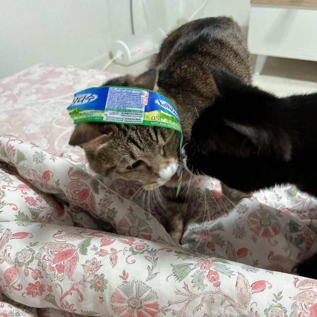 녀석의 머리에 라벨을 붙인 건 다름 아닌 장난꾸러기 집사였는데.