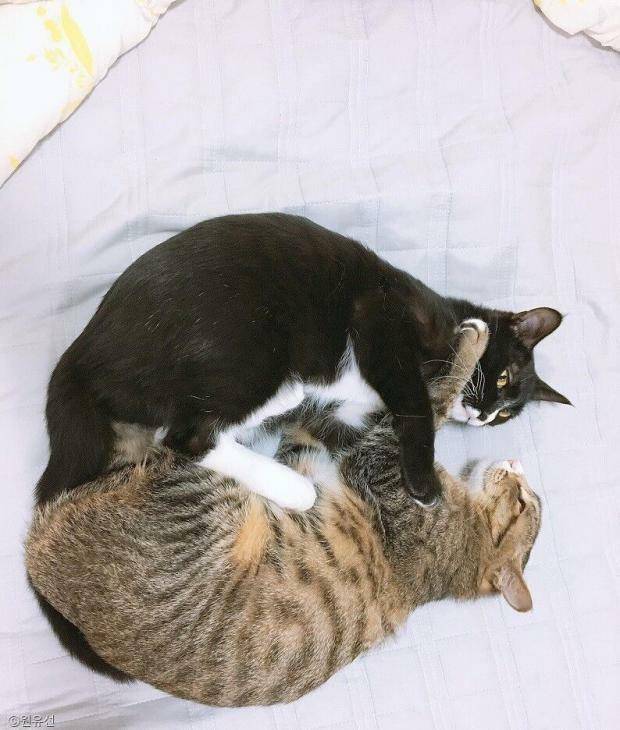 해당 사진을 접한 사람들은 "까만 냥이가 와서 도와주는 거 같아요. 너무 착하네요", "우리 고양이였으면 냥펀치부터 날렸을 텐데 순둥이인가 봐요~", "저도 우리 냥이 너무 귀여워서 가만둘 수가 없어 맨날 장난친답니다", "눈으로 욕하는 거 아닌가요?"라며 귀여운 봄과 리오의 모습에 마음을 뺏겼다는 반응을 보였다.