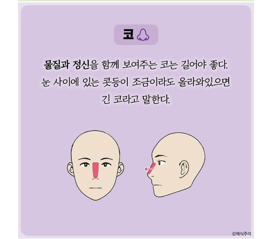 크고 탄탄한 코 → 돈복, 책임감 있음
