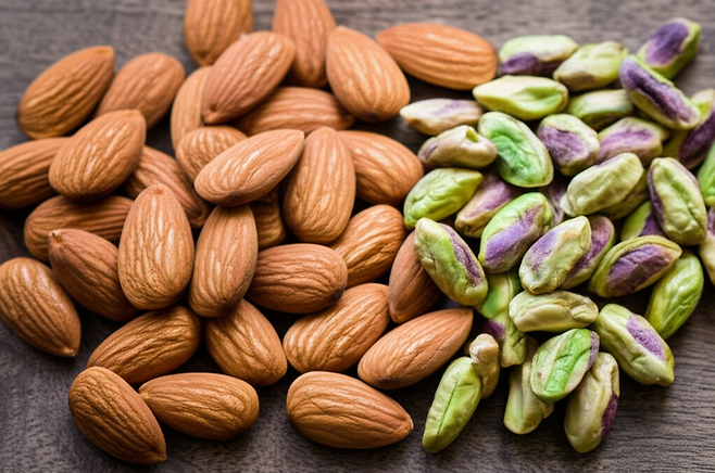 피스타치오: 피스타치오는 혈당과 콜레스테롤 수치를 낮추는 데 도움을 줄 수 있으며, 섬유질과 건강한 지방이 풍부합니다. 껍질째 먹으면 먹는 속도를 늦춰 과식을 방지할 수 있다는 장점도 있어요.