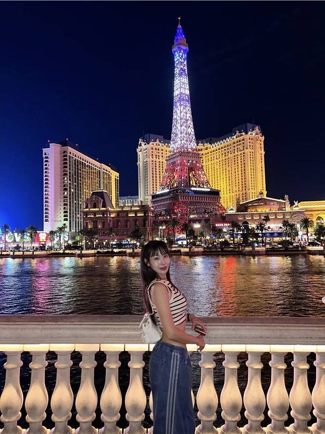 전 체조 국가대표 겸 방송인 신수지가 완벽한 복근 라인을 자랑하며 패셔너블한 라스베이거스 여행룩을 선보였습니다.
