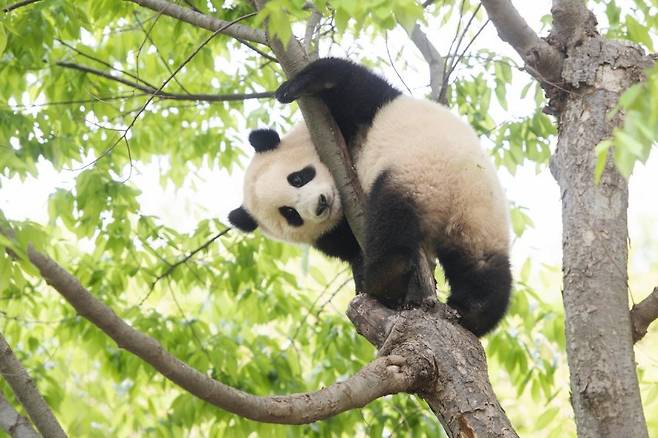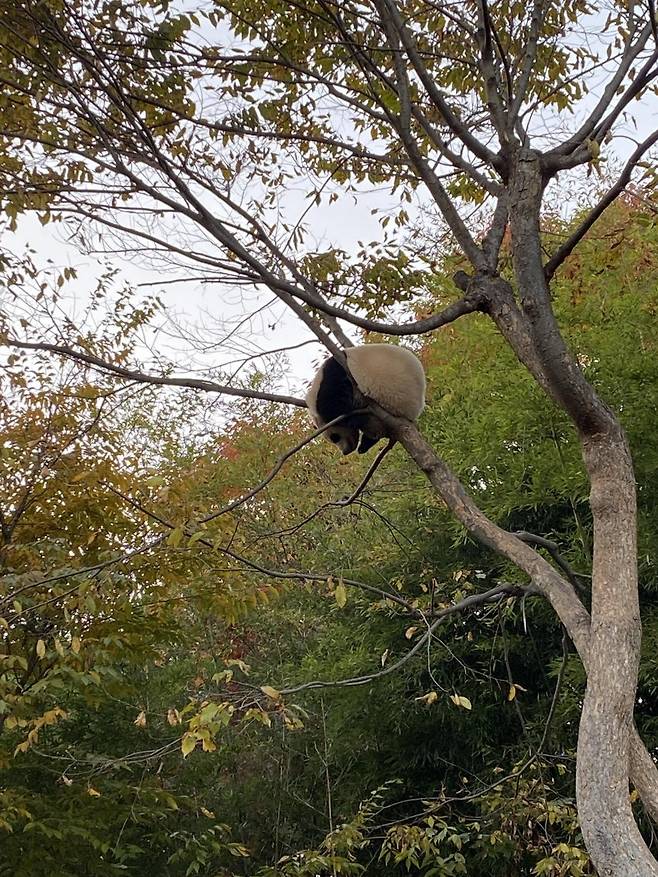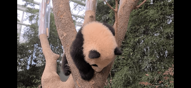 그 시절 푸바오는 너무 높은 곳을 좋아해 엄마한테 혼나면서도 나무 오르기를 즐기는 것으로 유명했죠.