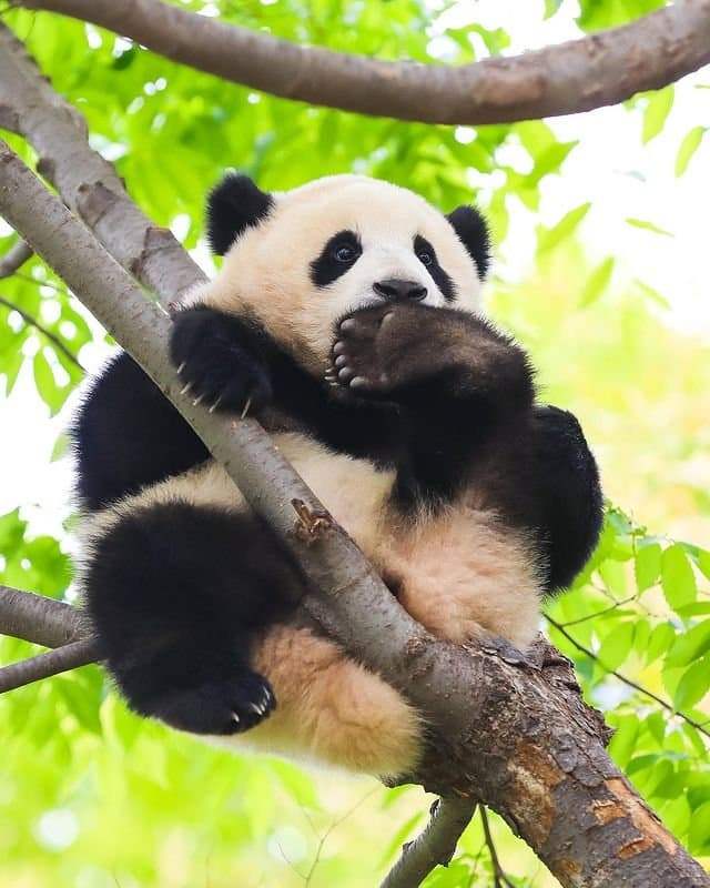 나무 위에 열매처럼 주렁 주렁 매달려있는 아기 푸바오의 모습이 너무나 귀여운데요.