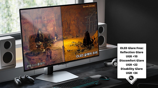 'OLED 글레어프리' 기술도 적용되었다. 미국 안전 인증기관인 UL의 검증을 받은 이 기술은 주변 빛의 반사를 크게 줄여주는 역할을 한다. 빛 반사는 줄어들었지만 색 정확도와 이미지 선명도는 유지한다는 것이 삼성전자의 설명이다. 덕분에 사용자는 별도의 차광 후드 없이도 선명한 화질과 일관된 수준의 밝기와 색상으로 게임할 수 있다.