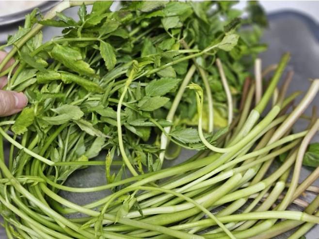 미나리는 중금속의 정화와 해독작용이 있는데, 간의 활동을 도와 피로회복에도 좋다고 하니 듬뿍 넣어주세요.