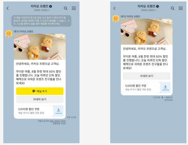 카카오가 15일 카카오톡 이용자의 채널 친구추가 없이 광고 메시지를 보낼 수 있는 '브랜드 메시지'를 출시했다. 기존 기업용 광고 메시지인 '친구톡'과 달리 이용자가 과거 마케팅 수신에 동의했다면 채널 친구추가 등 별도 조치 없이 메시지를 발송할 수 있다.