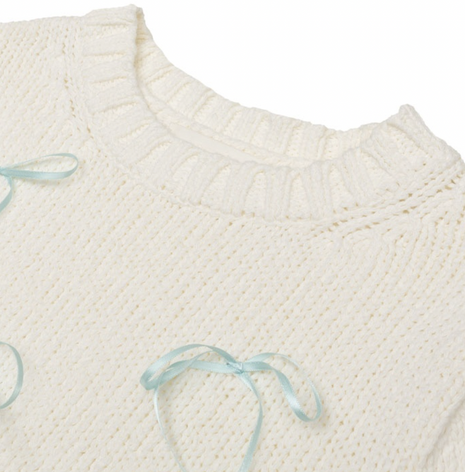 사진 속 니트 정보 - 어윗 RIBBONS SHORT-SLEEVED KNIT TOP-WHITE