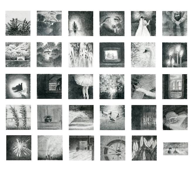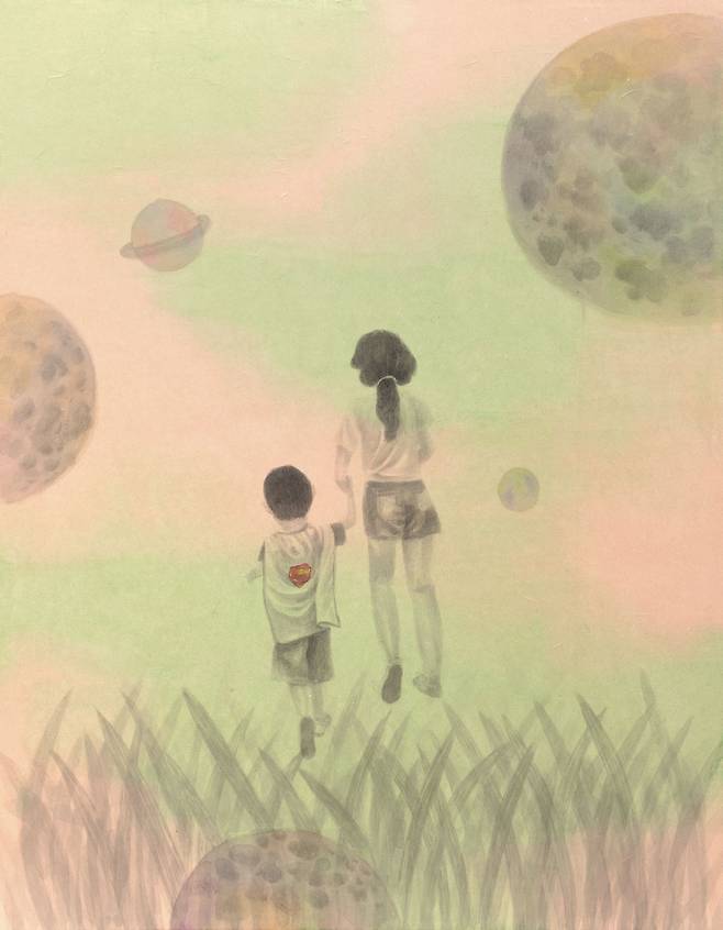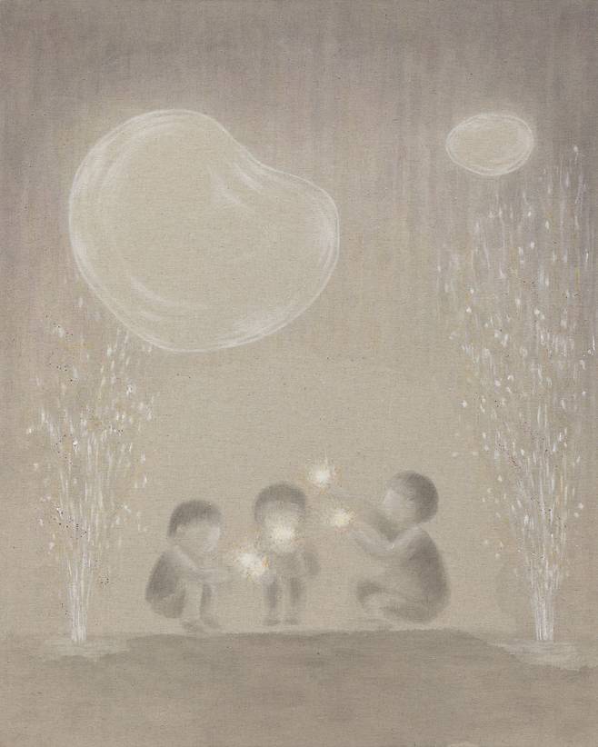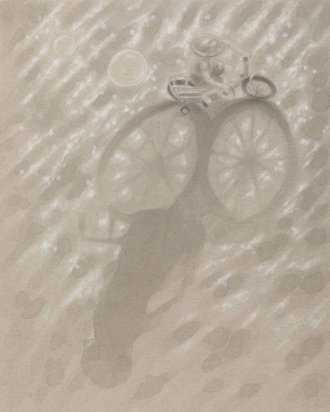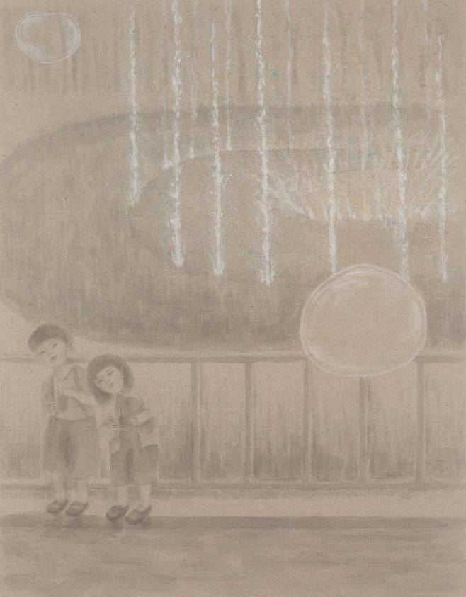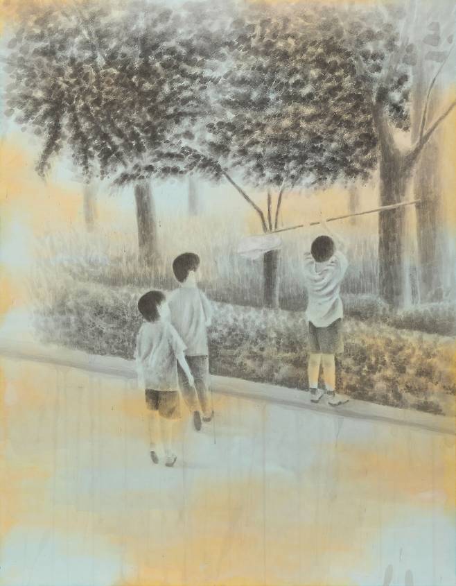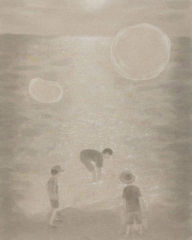 이렇듯 김영서의 서사는 우연히 펼친 일기장의 어느 날을 현실로 소환한다. 그리움을 그린다는 것은 행복한 기억들로 오늘을 채운다는 뜻이다. 추억이 많을수록 감성의 파동은 커지고 오늘의 고통은 흐릿한 과거에 뒤섞여 가벼워진다. 작가는 캔버스와 오일의 무게감보다 ‘장지/린넨’과 스미는 먹의 물성에 매력을 느낀 듯하다. 연필/콘테 등이 개입되고 선(線)이 기억을 형상화하는 과정 속에서 흐릿한 추억은 점차 선명해지고 ‘각자의 시간(추억조각)’들은 일상이 되어 자리한다. 추억은 만남이다.