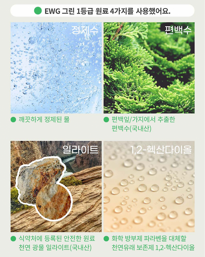 *EWG : Environmental Working Group, 미국 비영리 환경 단체로 공신력을 인정받고 있어요.