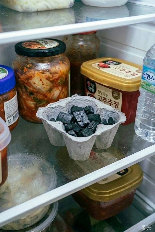 숯은 냄새 분자를 흡착하고, 베이킹소다는 산성·알칼리성 냄새를 중화하는 역할을 하는데, 계란판을 이용하면 내용물이 흩어지지 않고 교체 시에도 간편하게 바꿀 수 있어 편리하다. 특히 김치 냄새나 생선 비린내처럼 강한 냄새가 고민일 때 좋다.