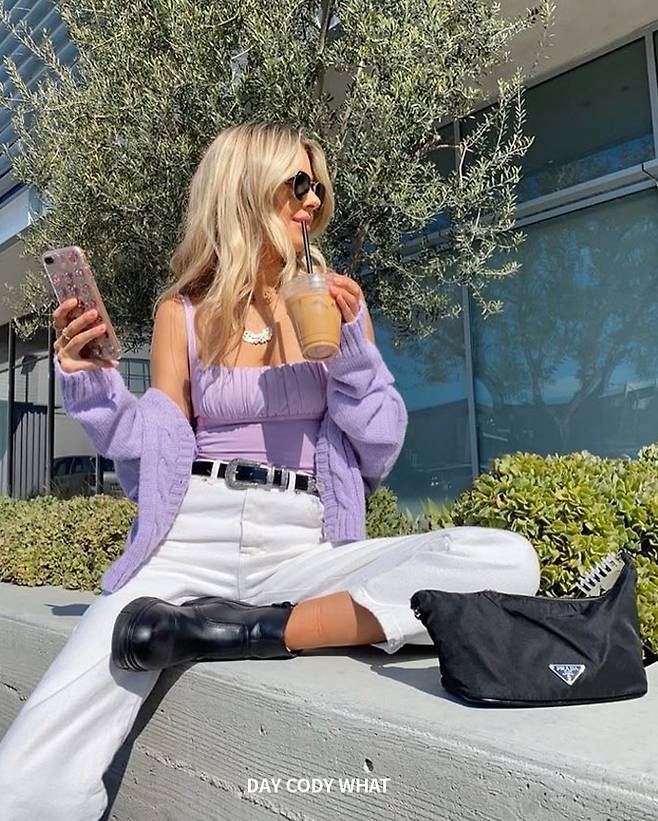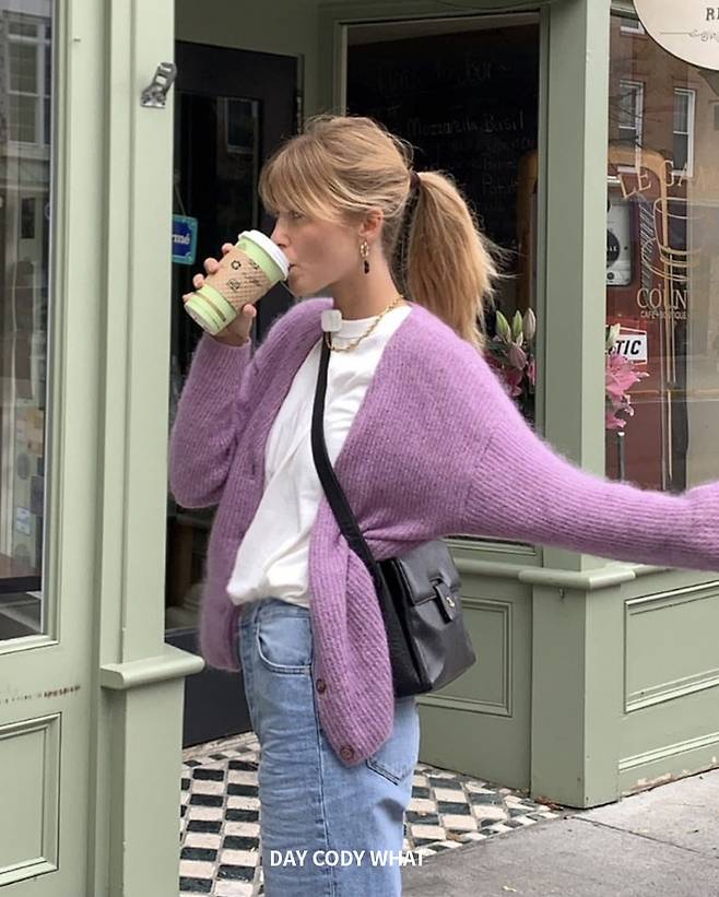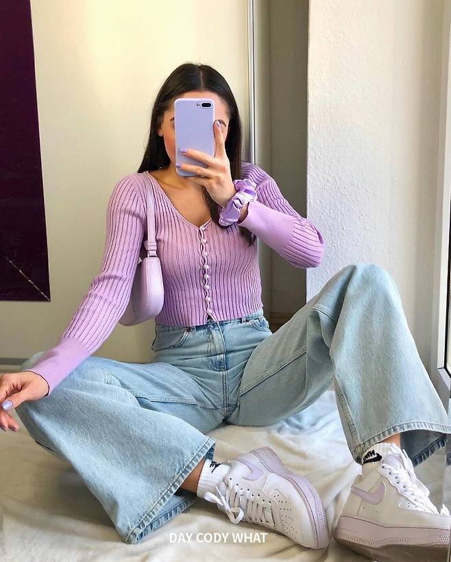 봄에 입기 좋은 보라색 코디