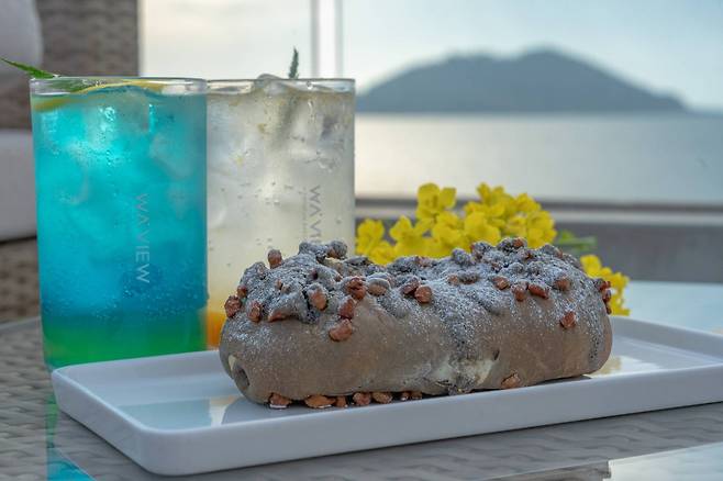 웨이뷰의 자랑은 바다 전망뿐 아니라 독특한 베이커리 메뉴다. 크림치즈 사과빵, 제주 천혜향빵 등 개성 있는 디저트와 음료를 선보이며, 상큼한 맛으로 인기 있는 ‘선라이즈 에이드’는 꼭 맛봐야 할 메뉴로 꼽힌다.