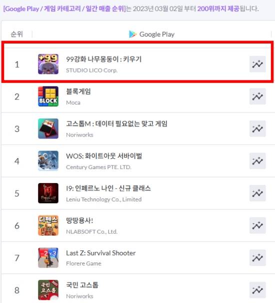 다에리소프트, '99몽 나무몽둥이: 키우기' 구글 스토어 인기 1위