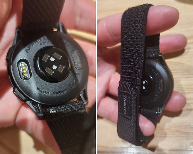 - 기본으로 제공되는 벨크로 스포츠 밴드는 전체 가벼움에 도움이 되지만 시계의 고급스러움에 약간 밀리는 느낌입니다. 다행히, 여러 다양한 워치 밴드를 추가 구입 가능하다네요.