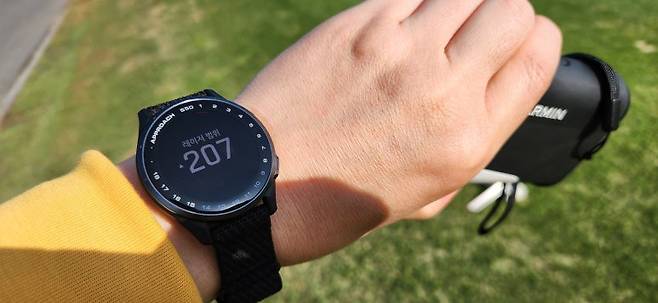 - 선명한 AMOLED 디스플레이는 1.2인치 사이즈임에도 그래픽과 코스 레이아웃을 보는데 전혀 불편하다는 느낌이 없습니다.