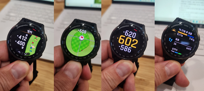 - 골프 워치나 거리 측정기를 사용하는 가장 큰 이유는 정확하고 빠르게 핀까지의 거리를 알려주는 데에 있습니다. 가민이 GPS 기술의 강자인 만큼 홀을 따라 걷는 동안 리얼 타임으로 표시되는 거리감은 훌륭합니다. 다만, 그린 위 핀 위치가 어디인지에 따라 핀까지의 정확한 거리가 다를 수 있지만 이 부분을 추가 보완하는 기술도 있으며 아래에 Z70 거리 측정기 리뷰 시 다시 알려드리겠습니다.