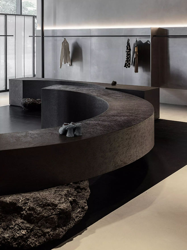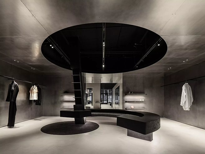 우리가 생각했던 준지의 브랜드는 블랙이라고 생각했고, 이를 공간 전체에 표현하고 싶었다. 어두운 컬러의 대표적인 현상인 그림자를 적극 활용해 공간을 구성했다.