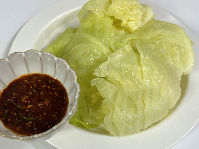 몸에 좋은 양배추는 쪄서 쌈으로 먹으면 정말 맛있습니다. 그냥 먹어도 충분히 맛있지만 새콤달콤한 양념장이 있으면 금상첨화지요.