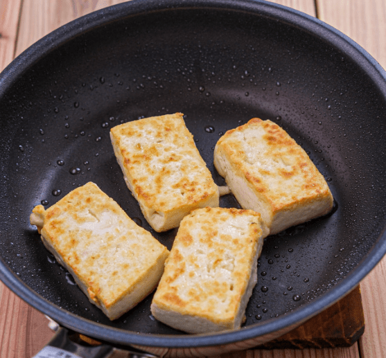 한입 크기로 자른 뒤 중불의 팬에 기름을 두르고 천천히 노릇하게 구워주면 겉은 바삭하고 속은 부드러운 두부 본연의 매력을 살릴 수 있다. 이때 두부를 너무 자주 뒤집지 않고 한 면씩 충분히 익히는 게 바삭함을 유지하는 팁이다.
