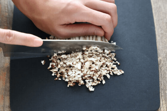 표고버섯은 다져야 양념이 잘 배고 식감도 좋다