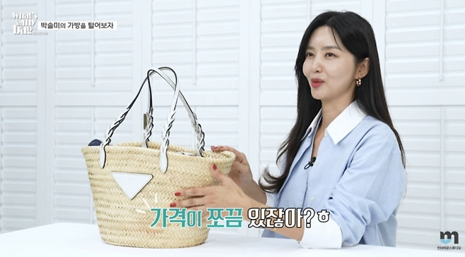 가방을 꺼낸 박솔미는 "이건 라탄 스타일 가방이다. 2년 전 생일에 친구 소유진이 선물로 크게 쐈다"며 미소를 지었다. 이어 "명품백이라 가격이 좀 있다. 솔직히 내 돈으로는 안 샀을 텐데, 친구가 사줬으니까 이제 들 수 있겠다 싶었다"며 당시를 회상했다.