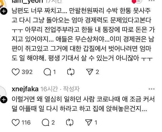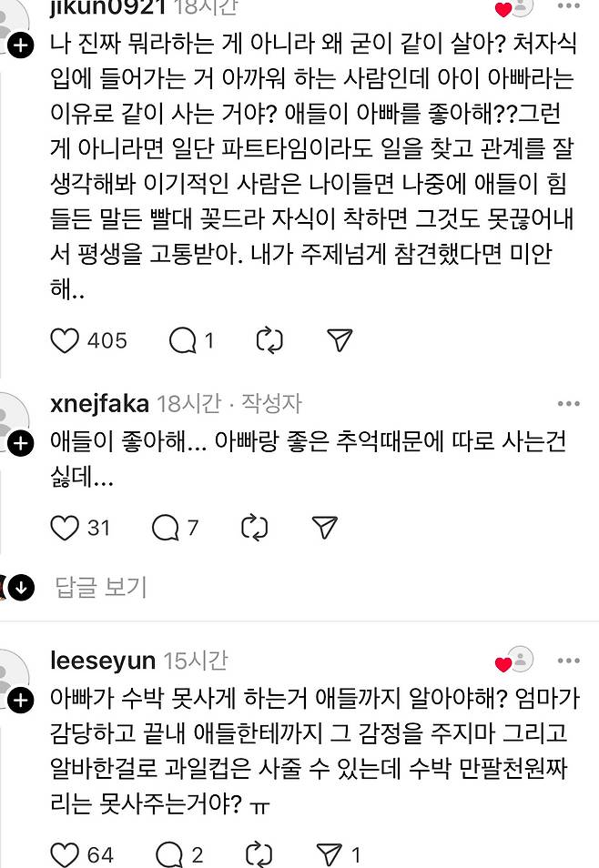 아내랑 애들이 너무 불쌍해요 ㅠㅠ
