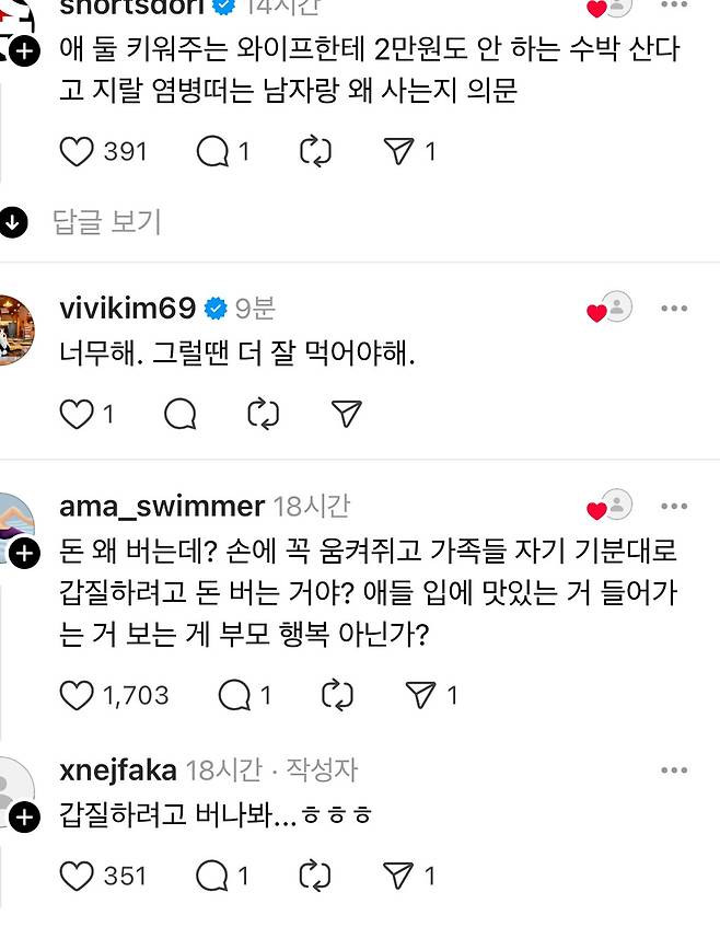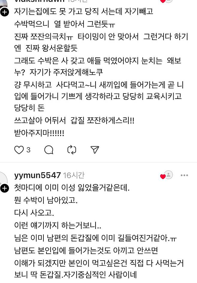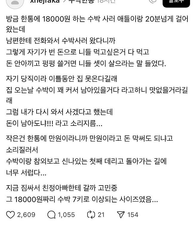 애들 먹는 수박 하나도 못사게 하는 남편