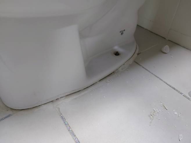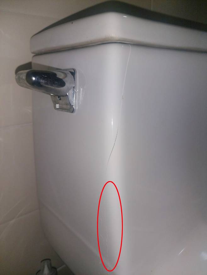 변기가 알 수 없는 이유(높은 확률로 애가 뭐 하다가 깬 것으로 추정되지만ㄷㄷㄷ)로 금이 갔어요.