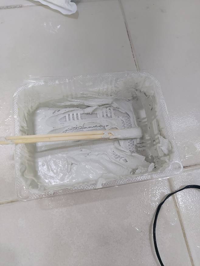 시멘트를 물과 섞어 준비해둡니다. 금방 굳기 때문에 시멘트 바르는 건 속도가 생명입니다ㄷㄷㄷㄷ