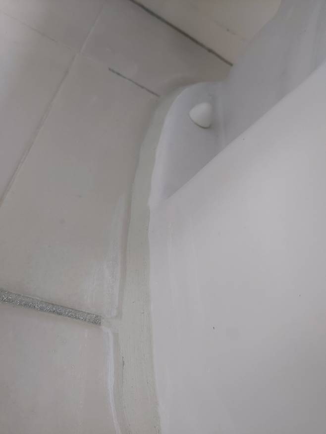 최종 마무리한 사진인데요, 실리콘이든 백시멘트든 균일하고 예쁘게 하기가 쉽진 않아요. 이건 몇 번을 해도