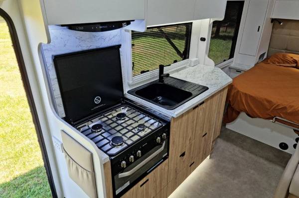 바닥에는 17mm 허니컴 구조 패널을 적용해 경량화와 내구성을 동시에 확보했다. 이러한 설계 변경을 통해 기존 모델과 비교했을 때 차체 중량을 120kg 줄이는 데 성공했다. 이 덕분에 캠핑카의 적재 용량이 증가할 뿐만 아니라 견인 차량의 연비 개선에도 긍정적인 영향을 미칠 것으로 기대된다.