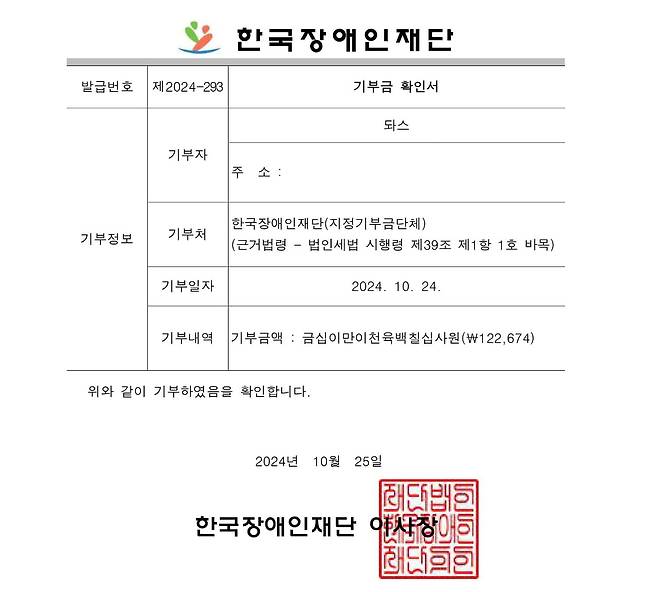수익의 20%는 장애인 재단에 기부하는 목적으로 사용됩니다.
