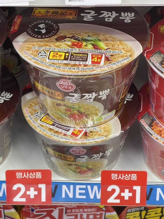 팬더굴소스로 유명한 이금기와 오뚜기가 제휴한 라면이에요.