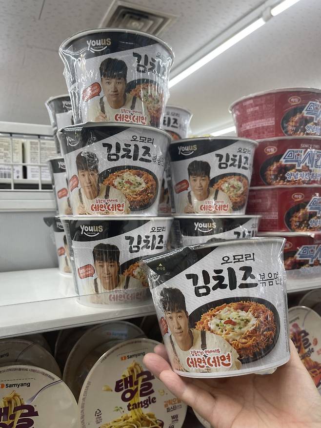 GS25신상 유어스 오모리 김치즈볶음면은 가수 김종민씨를 모델로 비벼먹는 볶음면 컨셉으로 출시했어요.