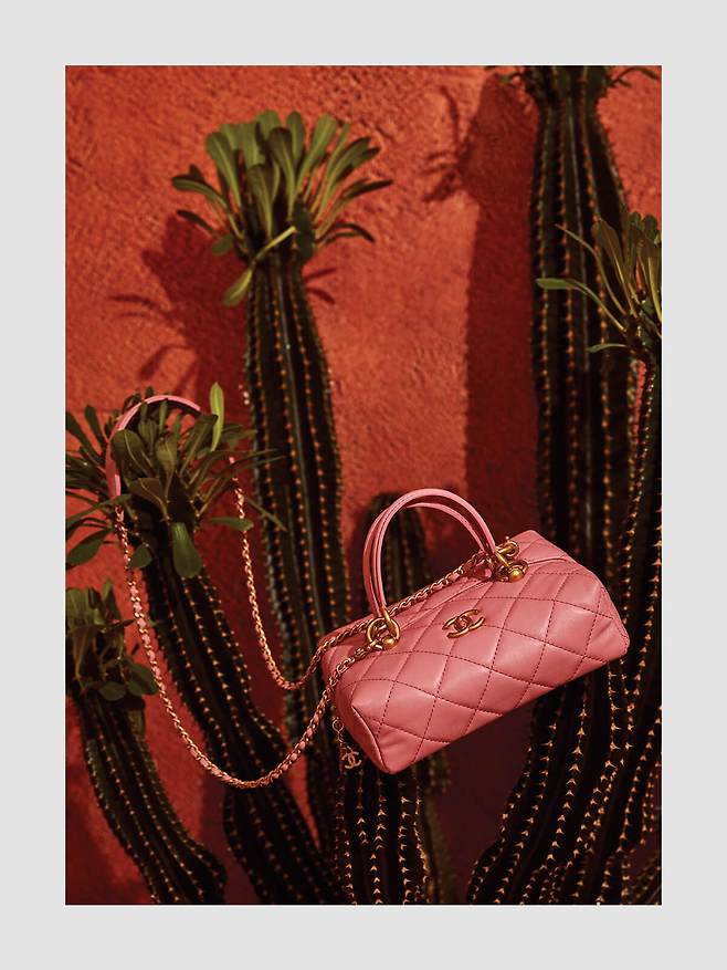 체인 스트랩 장식 핑크 톱 핸들 백 CHANEL
