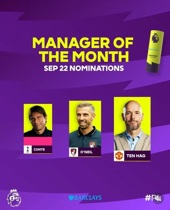 EPL은 22일(한국시간) 공식 SNS를 통해 2022-23시즌 EPL 9월 이달의 감독 후보 3인을 공개했다. EPL은 9월에 엘리자베스 2세 여왕의 서거로 7라운드 전체를 연기했고, 6라운드와 8라운드를 기준으로 후보를 추렸다.