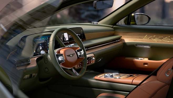 대시보드와 도어 트림에는 실제 올리브 원목을 적용했으며, 도어에는 올리브 잎 패턴을 새긴 특수 백라이트 그래픽을 더해 따뜻하고 깊이감 있는 분위기를 연출한다.