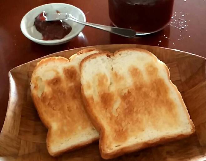 2. 토스터기를 뒤집어 털어주며 내부에 남아있는 잔여물을 제거한다.