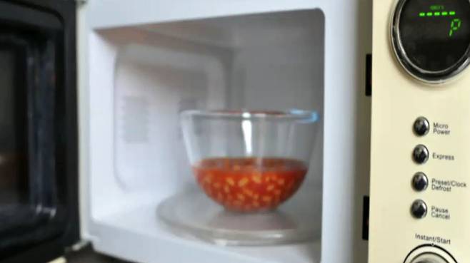 2. 잘 섞인 베이킹소다물을 전자레인지에 4분 정도 돌린다.