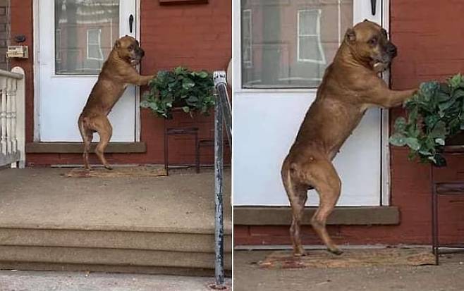 홀로 집에 남겨진 강아지 큐피트는 사무치는 외로움이 들 때면 두 발로 일어서서 문을 두드리며 문 좀 열어달라고 하소연하는 것이었습니다.