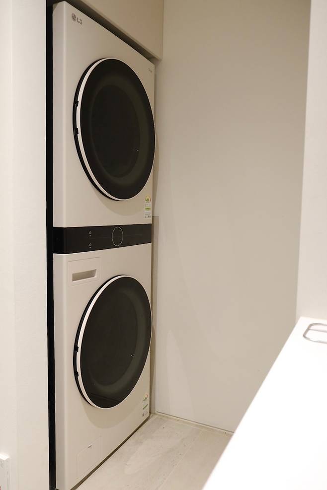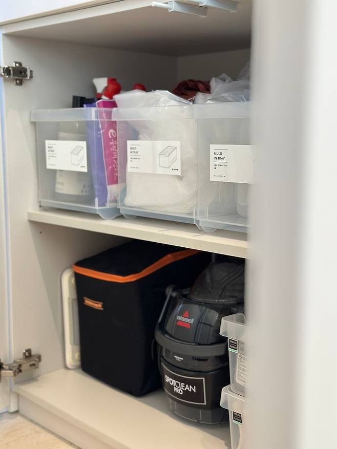 하부장에는 세탁을 위한 아이템들이 수납되어 있어요.