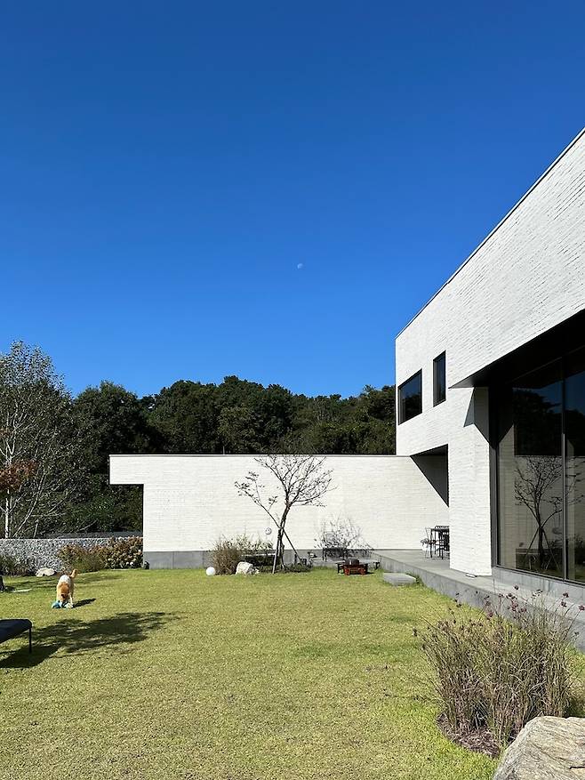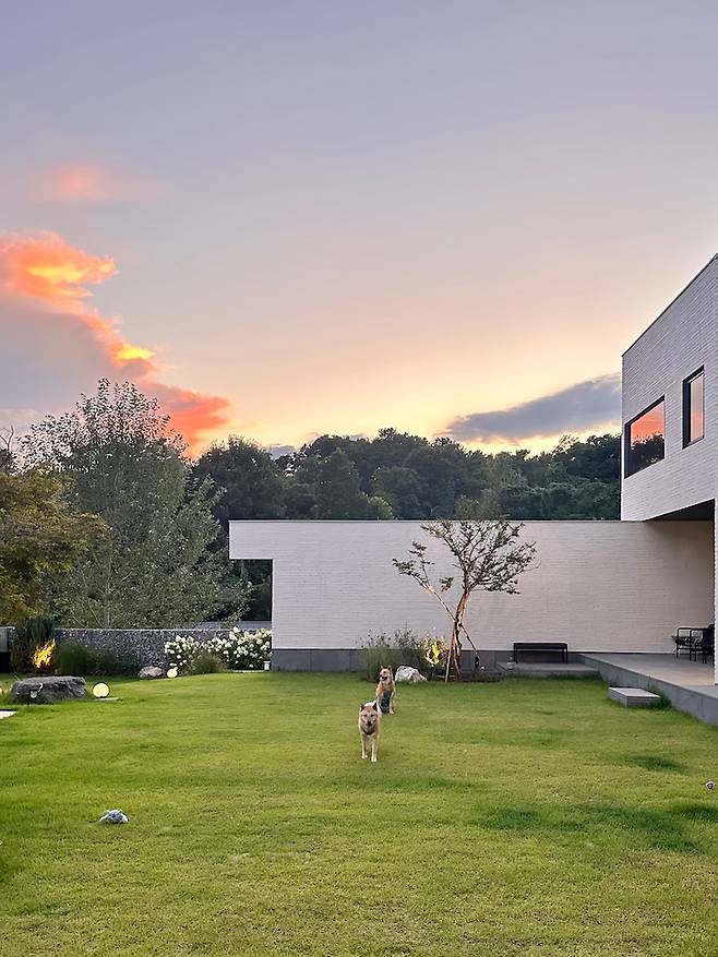 그리고 높낮이가 다소 달랐던 기존의 필지를 모두 평탄화하지 않고, 일부는 둔덕의 흐름을 그대로 살려 자연스러운 높낮이가 있는 마당으로 설계했습니다. 오르락 내리락, 자연스러운 언덕을 뛰놀기 좋아하는 우리 반려견들에게 좋은 선물을 주고 싶었거든요.