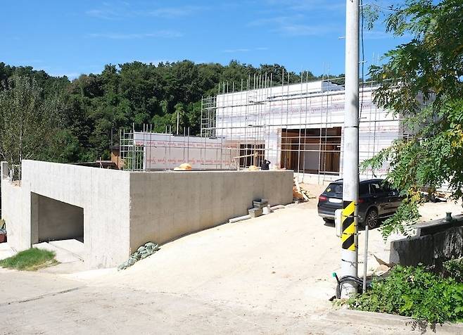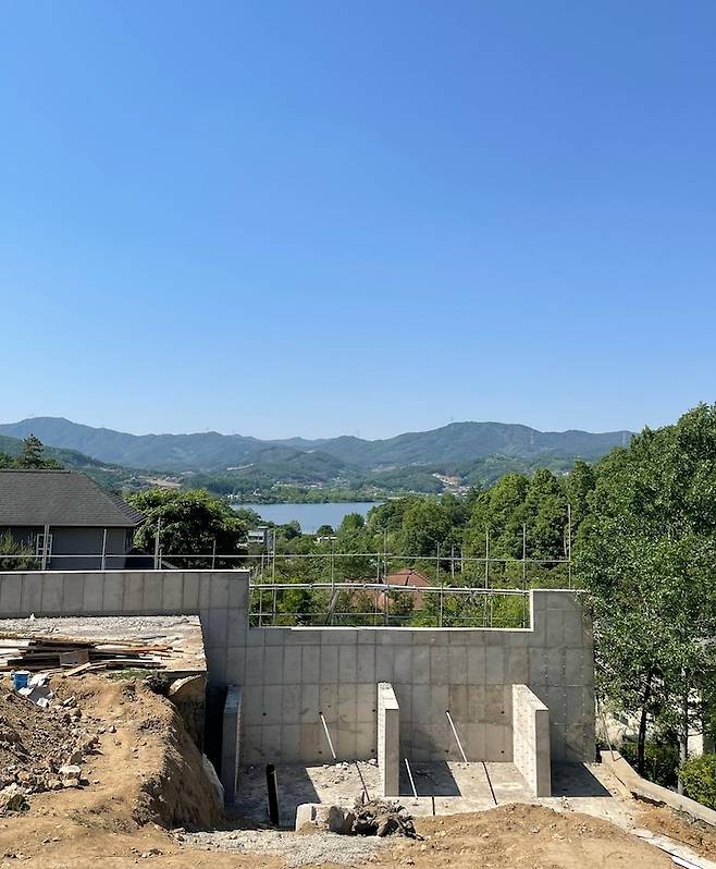옹벽을 세우는 시간은 꽤 오래 걸렸어요. 10미터 이상의 높이, 두 뺨 가득한 두께 그리고 어마어마한 비용까지. 도심주택과는 차원이 다른 집을 짓는 일이란 걸 깨닫는 순간이었어요.