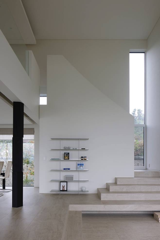 거실로부터 모든 공간이 통하는 흐름, 계단 자체가 하나의 멋진 구조물이 되어서 거실을 멋지게 그려내는… 계단에 서서 거실을 바라보고 마당을 바라보는 기분 역시 좋더군요.