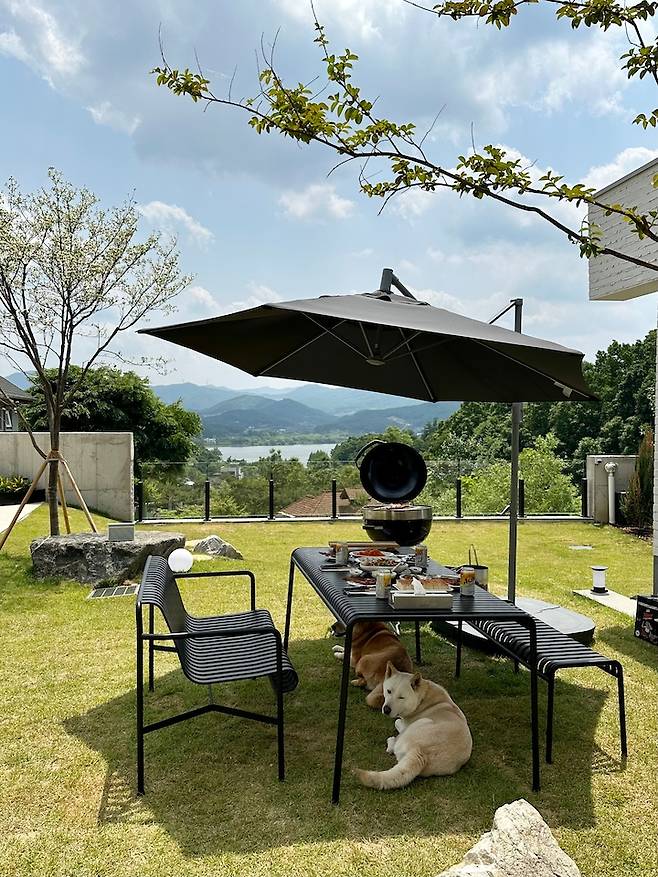 아침에 눈 뜨자마자 커피를 내려서 식탁에 털썩 앉아 마당과 남한 강을 보며 커피 한 잔 마시는 기분은 ‘그래, 내가 이러려고 왔지’ 깨닫게 한답니다. 게다가 양평은 커피 값이 무척이나 비싸서 그냥 최고 뷰 좋은 우리 집에서 내려 마시고 있어요. 덕분에 카페에 쓰는 돈은 95% 세이브 하는 것 같아요.