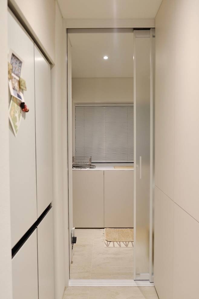 큰 팬트리를 두면 그만큼 우리가 자주 생활하는 거실, 방, 주방의 평수가 좁아질 수 밖에 없으니 곳곳에 붙박이 수납장을 만들었어요. 창고처럼 한 공간에 채워두는 것이 아니라 공간마다 필요한 적절한 아이템들을 챙겨놓는 방식을 선택한거죠. 필요한 것을 사용하기에 동선이 길지 않고, 적재적소의 아이템을 챙겨둘 수 있으니 오히려 생활하기엔 편한 것 같아요.