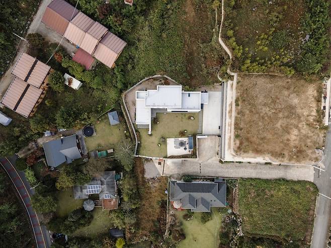 작정하고 전원주택 단지로 개발한 마을이 아니라서 필지가 넓은 편이고, 집 마다의 공간이 충분히 확보되었다는 점이 너무 좋았어요. 택지들의 높낮이도 모두 달라서 주택마다 프라이빗하게 생활할 수 있구요.